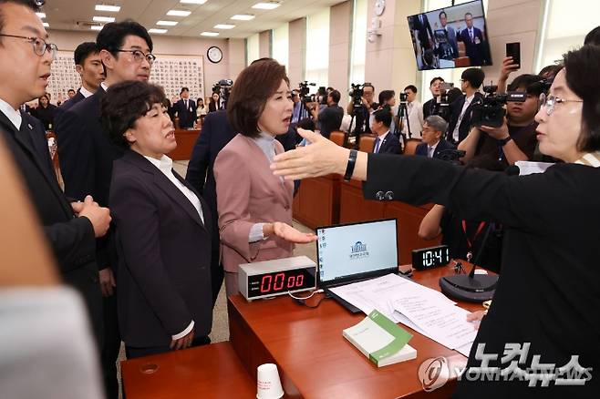 ◇ 김현정> 우리는 이렇게 좀 이제 가을 왔습니다 하면서 한바탕 웃으며 훈훈하게 시작을 하는데 법사위에서는 연일 한바탕 소란, 소동, 난장판이 벌어지고 있어요. 어제는 앞서도 저희가 잠깐 보여드렸습니다만 그러니까 추미애 위원장이 국민의힘 법사위원들한테 그 노트북에 붙인 스티커 떼시오. 이러면서 소동이 벌어지기 시작한 겁니다. 스티커에는 뭐라고 쓰여 있었냐면 '정치 조작, 가짜 뉴스 공작 민주당' 이런 문구가 적혀 있었다 그래요. 그걸 떼야 시작하겠다는 추미애 위원장과 못 뗀다 하는 국민의힘 사이에 설전이 벌어지면서 결국은 추미애 위원장이 나경원, 송석준, 조배숙 의원 퇴장하시오. 이렇게 하면서 아까 들려드렸던 이렇게 하는 게 윤석열 오빠한테 무슨 도움이 되냐. 이런 말도 나왔고 추미애의 추가 추할 추다. 이런 이야기도 나오고 참 전쟁터가 된 겁니다. 어떻게 보셨습니까? 장 소장님.