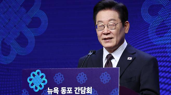 ▲ 유엔총회 참석차 미국을 방문한 이재명 대통령이 22일(현지시간) 뉴욕의 한 호텔에서 열린 동포간담회에서 인사말을 하고 있다.