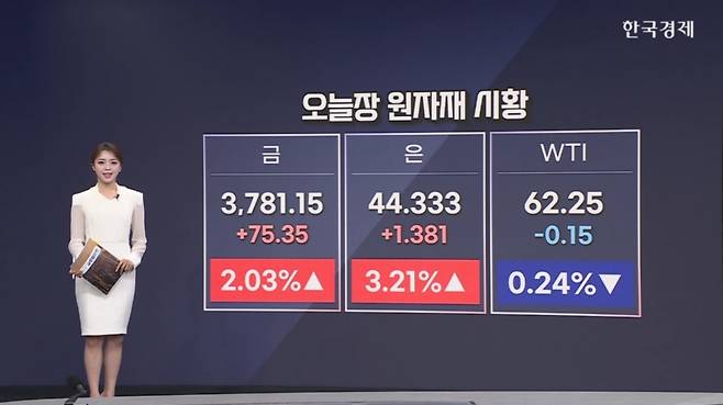 네, 원자재 시황도 살펴보겠습니다. 5시 수치를 기준으로 하고 있고요. 오늘장 눈에 띄었던 원자재 이슈들 보면, 금은 2% 상승 또 한번 사상 최고치를 경신한 모습이고요. 은은 3% 올라 44달러를 넘었습니다. 유가는 공급 과잉 우려에 0.2% 소폭 밀렸습니다.