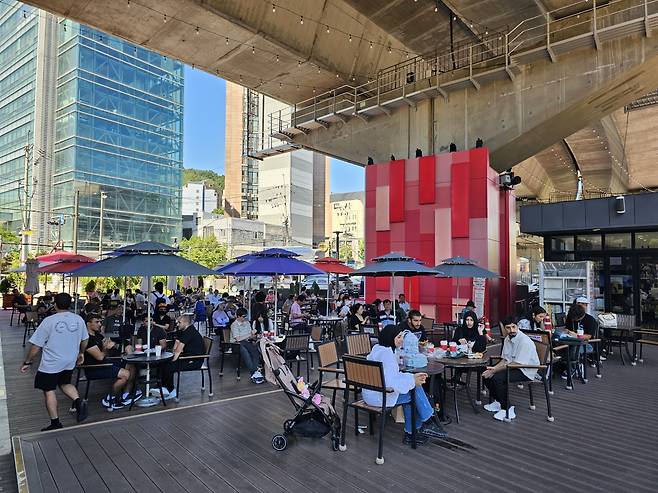 서울 서대문구 홍제천에 들어선 '카페 폭포'가 문을 연 지 2년 만에 SNS를 타고 서울의 글로벌 명소로 떠오르고 있다.
