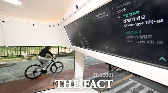 '운전석 없이 청계천 달린다'...자율주행셔틀 '청계A01' 운행 [TF사진관]