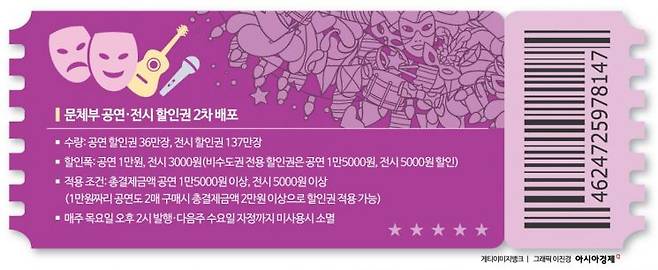 문체부는 지난달 8일부터 2025년 2차 추가경정예산 100억원을 활용해 공연 할인권 50만장, 전시 할인권 160만장을 배포했다. 이 중 사용되지 않은 할인권 물량을 활용해 오는 25일부터 2차 배포에 나선다.