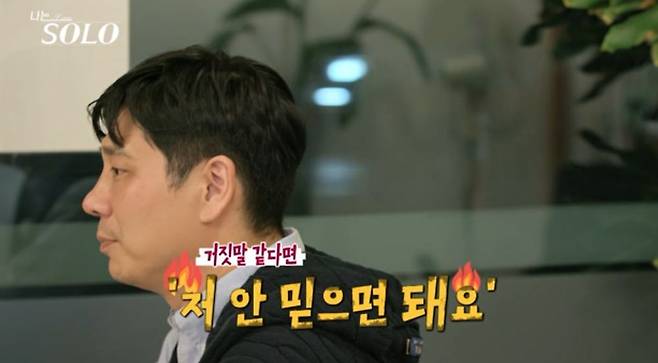 영수는 또 다른 솔로녀에게 "제가 한 말 중 거짓말이 있다면 믿지 않으셔도 된다"며 진정성을 강하게 어필했다.