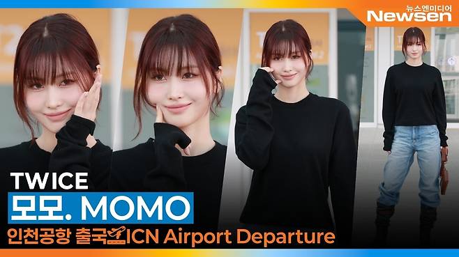 트와이스 모모, 올블랙 니트+데님으로 시크한 공항패션 (출국)[뉴스엔TV]