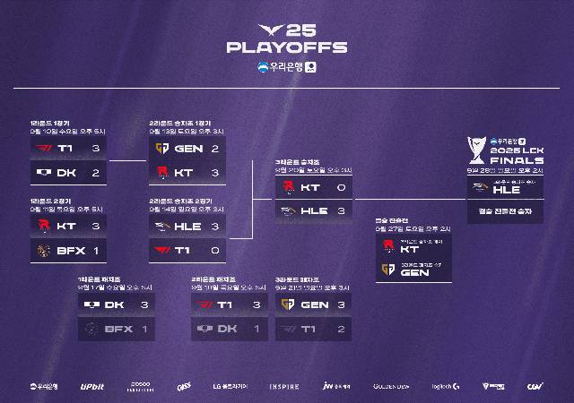 라이엇 게임즈가 개발 및 서비스하는 '리그 오브 레전드(LoL)'의 이스포츠 한국 프로 리그인 LCK를 주최하는 리그 오브 레전드 챔피언스 코리아(이하 'LCK')는 17일(수)과 18일(목), 20일(토)과 21일(일) 서울 종로구 롤파크에 위치한 LCK 아레나에서 열린 2025 우리은행 LCK 플레이오프 2주 차 결과 한화생명e스포츠가 결승전에 직행했고 kt 롤스터와 젠지가 27일 결승 진출전에 나선다고 밝혔다.