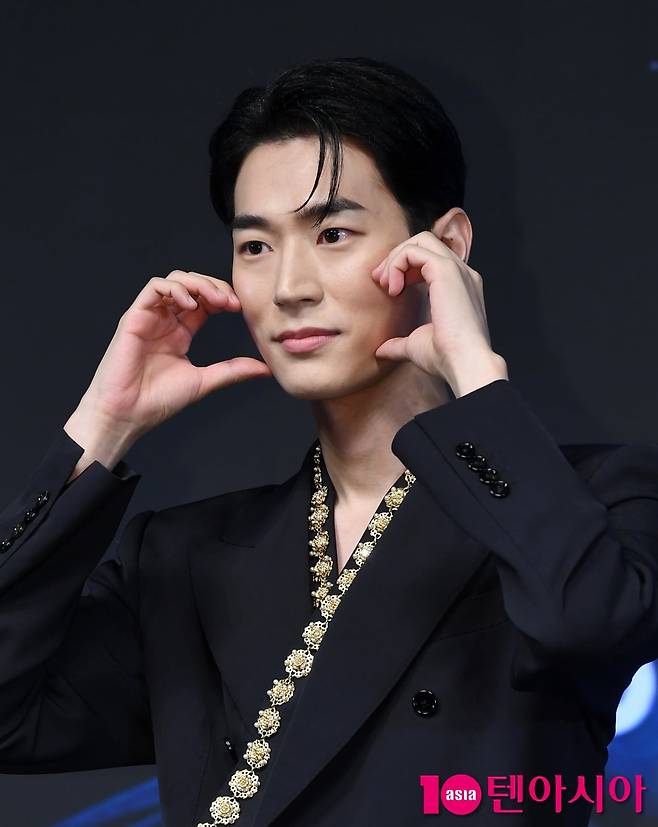 배우 박서함이 23일 서울 강남구 강남 엘리에나 호텔에서 열린 디즈니+의 오리지널 시리즈 <탁류> 제작발표회에 참석해 포즈를 취하고 있다. 탁류>