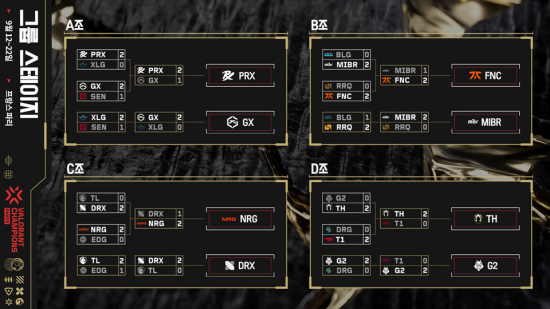 16강 그룹 스테이지가 완료된 조 추첨식도 진행됐다. 16강에서 각 조 1위를 차지한 네 팀들이 추첨으로 통해 프나틱, 페이퍼 렉스, 팀 헤레틱스, NRG 순서로 자리를 잡았고 조 2위 추첨 결과 메이드 인 브라질이 선택됐지만 프나틱과 16강에서 같은 조였기 때문에 반대편 브래킷에 배치됐고 DRX가 다음으로 뽑히면서 DRX의 상대는 프나틱으로 결정됐다.