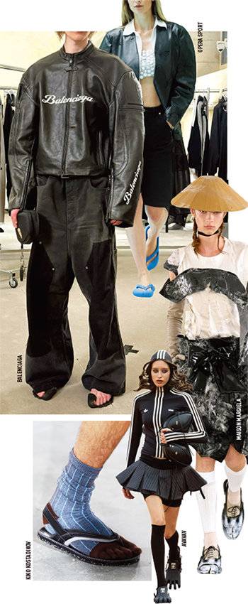 패션 하우스의 상상력은 여기서 멈추지 않는다. 발렌시아가는 2025 프리폴 컬렉션에서 엄지발가락만 남기고 윗부분을 모두 없앤 제로 슈즈를 공개했다. 얇은 몰드 솔이 발뒤꿈치를 살짝 받쳐줄 뿐 발가락이 모두 드러나는 과감한 디자인이었다. 발렌시아가는 이를 두고 "신발의 본질만을 남긴 채 최대한 맨발에 가깝게 만들고 싶었다"고 의도를 드러냈다. 또 다른 급진적 사례로는 이탈리아 출신의 아방가르드 브랜드 아바바브를 들 수 있다. 지난 S/S 컬렉션에서 글로벌 스포츠 브랜드 아디다스와 협업한 핑거 슈즈를 공개하며 열띤 반응을 이끌어냈다. 아디다스의 상징인 쓰리 스트라이프를 두른 혁신적인 발가락 스니커즈는 올해 패션계의 화제작으로 떠올랐다. 2025 F/W 컬렉션에서는 아예 모델들에게 신발 대신 두툼한 스포츠 양말을 신긴 채 런웨이를 활보케 했다. "신발이 꼭 있어야 하나?"라는 질문을 던지듯 두 발의 자유를 극대화한 연출이었다. 다가오는 시즌에도 맨발화 바람은 계속될 예정이다. 런던의 키코 코스타디노프는 2026 S/S 컬렉션에서 발가락 실루엣을 강조한 시스루 양말과 플립플롭의 믹스 매치를 선보였고, 코펜하겐의 오페라스포트는 하바이아나스와 협업해 세계 최초의 3D 프린팅 플립플롭을 쇼에 올렸다. 기능성 조리가 첨단기술을 만나 고감도 패션 아이템으로 재탄생한 셈이다.