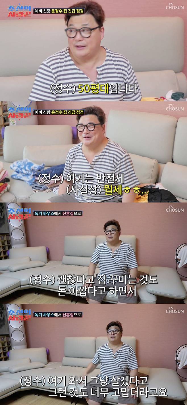 22일 방송된 TV조선 '조선의 사랑꾼'에는 윤정수가 출연해 자신의 집을 공개했다. 이날 공개된 윤정수의 집은 50평대 반전세로, 사실상 월세라고 알려졌다.