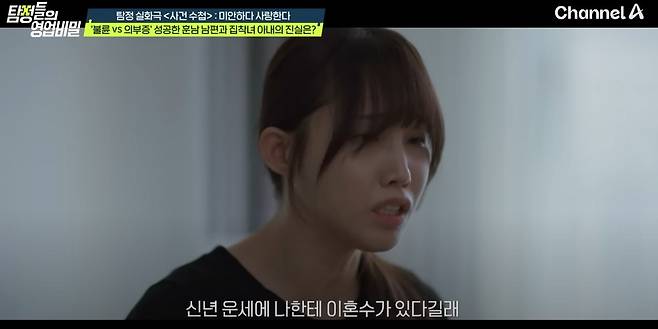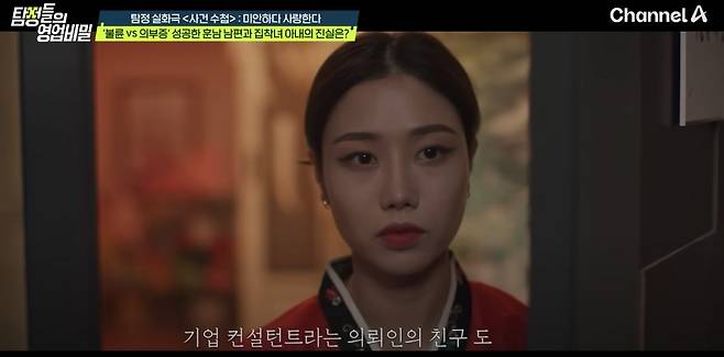 22일 방송된 채널A '탐정들의 영업비밀' 속 '사건 수첩' 코너에서는 "성공한 훈남 남편이 부하직원과 바람을 피우는 것 같다"는 의뢰인의 사연이 등장했다.
