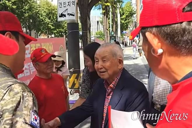 | ▲ 특검에 출석하지 않던 김장환 목사가 돌연 해병대예비역연대의 극동방송 앞 집회 현장에 모습을 드러냈다. |