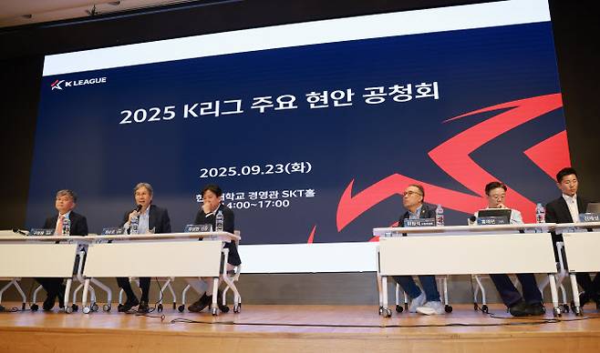 이날 공청회는 서호정 기자가 사회를 맡았고 최순호 수원FC 단장, 구창용 제주SK 대표, 유성한 FC서울 단장, 위원석 대한축구협회 소통위원장, 홍재민 기자, 김재성 K리그 기술연구그룹(TSG) 위원, 김보경 FC안양 선수 등이 패널로 참석했다. 이 외에도 K리그1·2 구단 관계자들이 참석했다.
