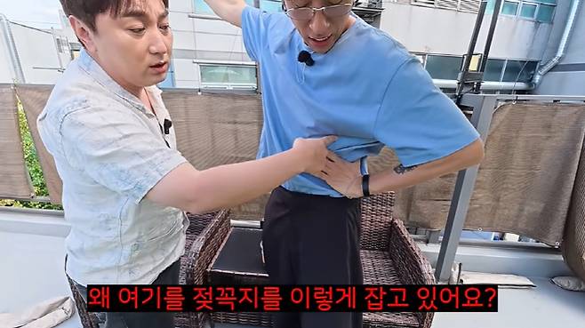 그때 황제성은 허리 위로 손을 올린 빽가를 향해 "왜 허리가 아닌 젖꼭지를 잡고 있냐"고 물었다. 당황한 빽가는 "골반이 위에 있다"면서 "내 배꼽이 위에 있는 거 모르는구나"라면서 갑자기 자신의 신체의 비밀을 공개했다.