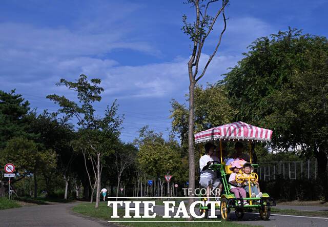 [더팩트ㅣ이새롬 기자] 절기상 추분인 23일 오후 서울 서초구 반포 한강공원을 찾은 시민들이 파란 하늘 아래 가을 정취를 만끽하고 있다.