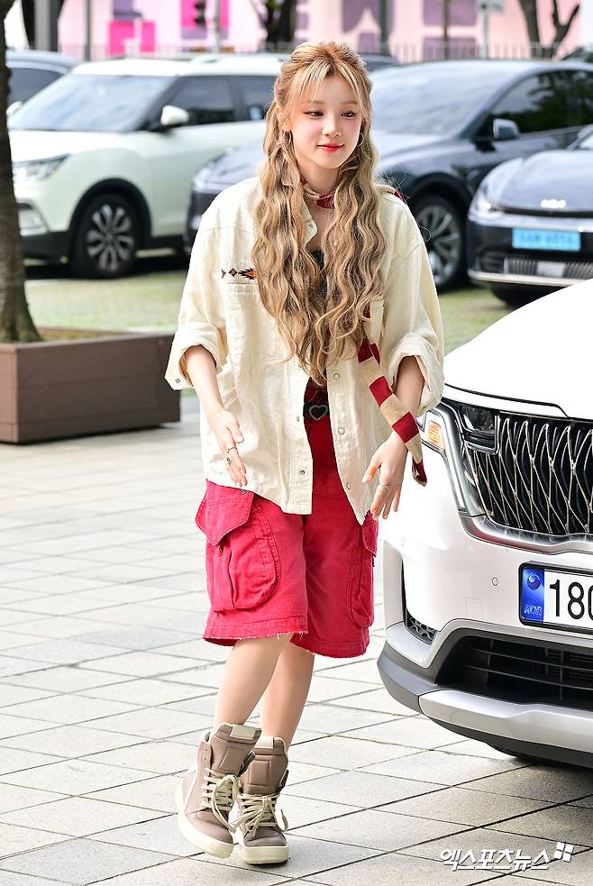 레드 컬러의 카고 팬츠로 스트리트 무드를 강조했고, 크롭 블랙 티셔츠에 프린팅 포인트를 더해 유니크한 스타일링을 완성한 우기는 루즈핏 셔츠를 걸쳐내며 자유분방한 감각을 드러내며 눈길을 끌었다. 또한 취재진에게 "오늘 생일이에요"라며 자랑을 한 후 축하를 받았고, 포인트 안무 요청에는 멋지게 선보이며 힙합을 강조헀다.