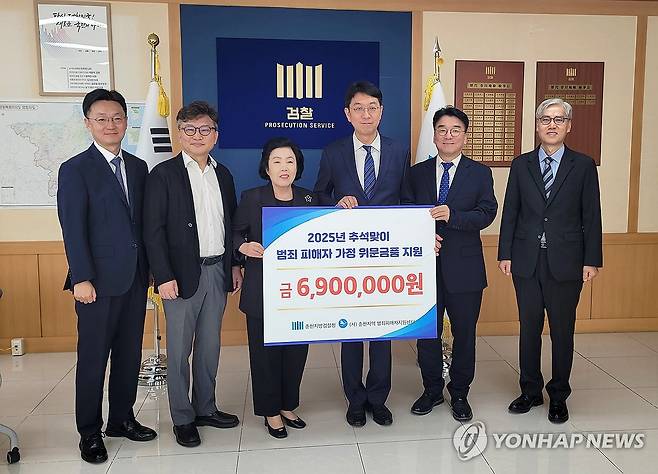(춘천=연합뉴스) 춘천지역범죄피해자지원센터와 춘천지방검찰청은 추석 명절을 앞둔 23일 범죄 피해로 어렵게 생활하는 피해자 가정 22세대에게 690만원 상당의 지원금과 햅쌀, 명절 선물 세트 등 위문품을 전달했다.