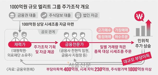 종합병원, 대형학원을 운영하는 소위 '슈퍼리치'(초부자)와 금융사 전·현직 임원 등 '엘리트 그룹'이 조직적으로 움직인 1000억원 규모의 대형 주가조작이 적발됐다.
