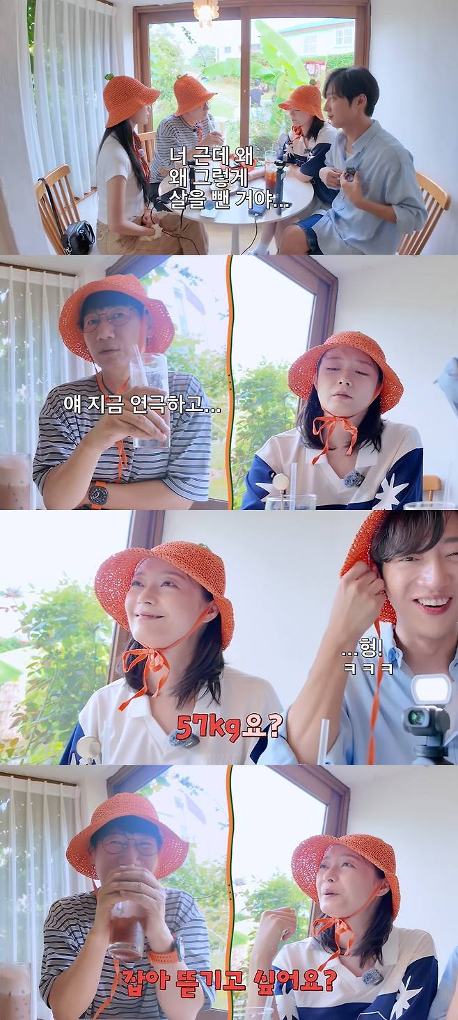 걱정하던 지석진은 갑자기 장난기가 발동해 "그래서 지금 57kg 정도 나가겠다"라고 말했고 전소민은 지석진이 쓰고 있는 모자를 치며 티격태격했다. 이미주는 "난 뺐다가 너무 해골 같아서 찌웠다"라고 이야기했고 지석진은 "그럼 넌 55kg?"라며 장난을 이어갔다.