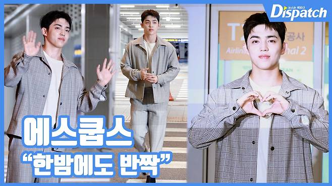 이날 에스쿱스는 그레이 체크무늬 세미 수트 셋업 패션으로 완벽한 핏을 자랑하며 우월한 자태를 자랑했다.