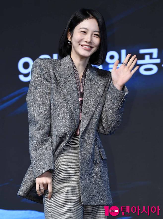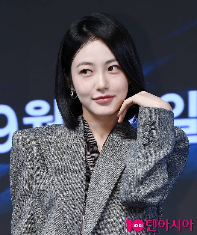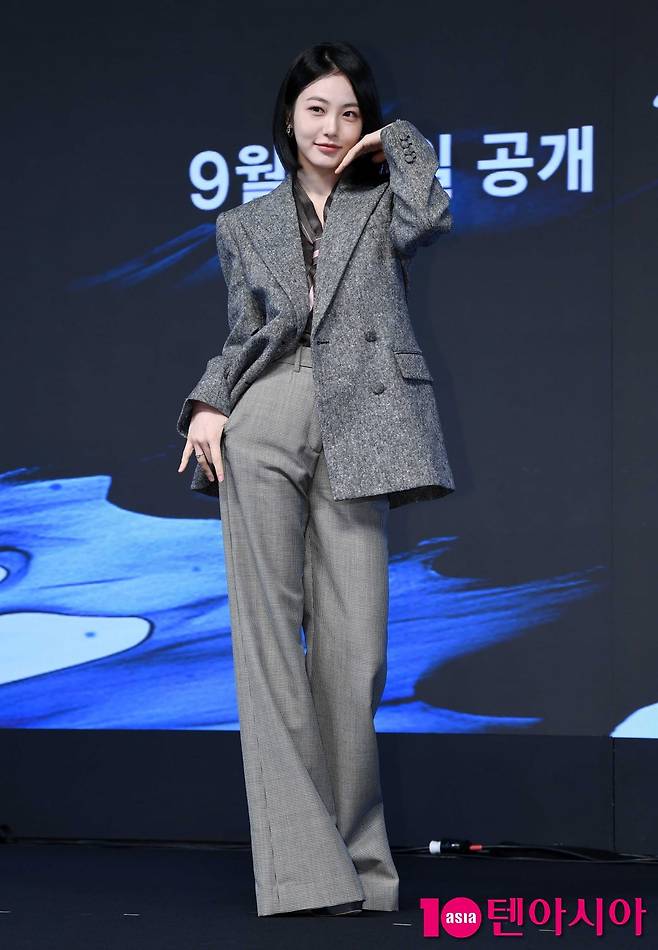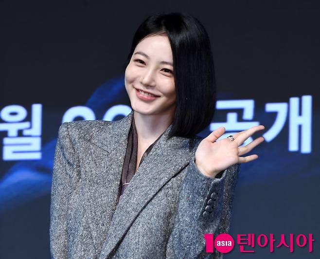 배우 신예은이 23일 서울 강남구 강남 엘리에나 호텔에서 열린 디즈니+의 오리지널 시리즈 <탁류> 제작발표회에 참석해 포즈를 취하고 있다. 탁류>