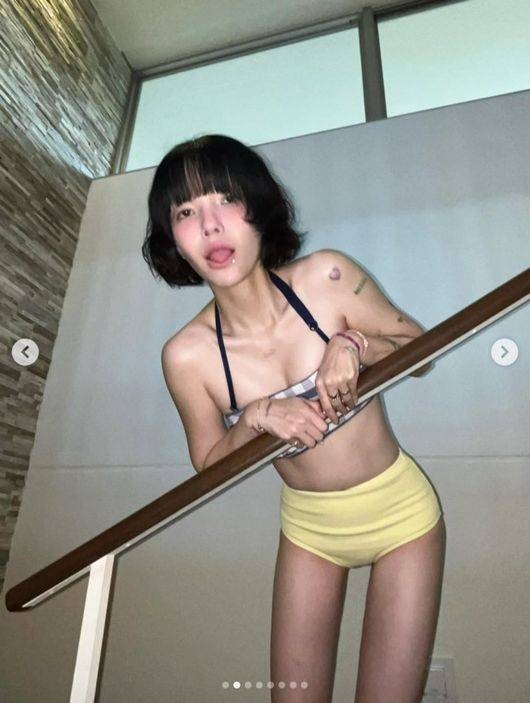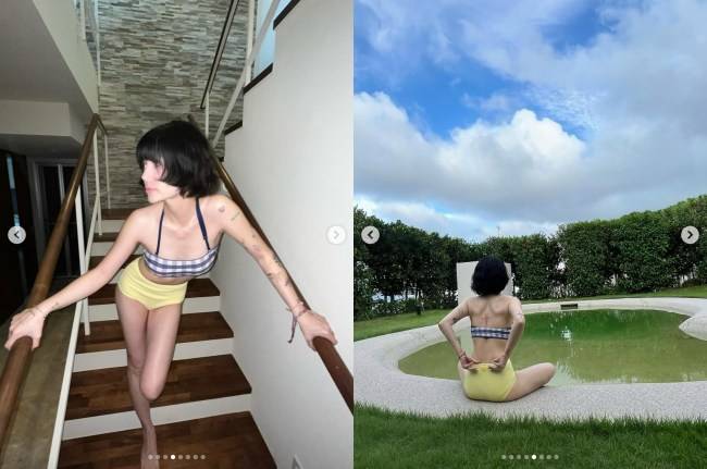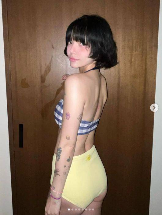 AOA 출신 지민, '뼈말라' 비키니 몸매 자랑..온몸 가득 '문신' 포착