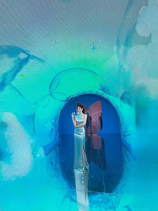 공개된 사진 속 쯔위는 메탈릭한 광택이 돋보이는 비대칭 원숄더 실버 드레스를 착용해 력셔리 여신 무드를 완성했다.