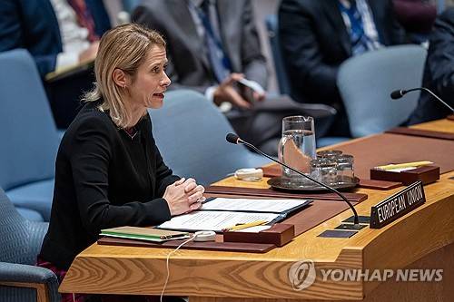 High Representative of the European Union for Foreign Affairs and Security Policy and Vice President of the European Commission, Kaja Kallas, speaks during a Security Council meeting at the United Nations headquarters, Tuesday, Sept. 23, 2025. (AP Photo/Yuki Iwamura)