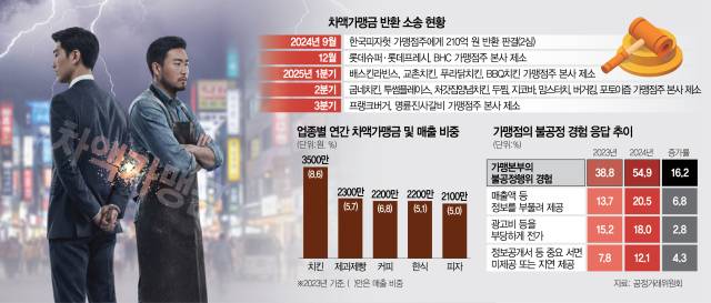 갈등은 이미 통계로도 나타나고 있다. 공정위의 ‘2024년도 가맹 분야 서면 실태 조사’에 따르면 가맹 본부로부터 불공정 행위를 경험한 적이 있다고 응답한 가맹점주 비율은 54.9%로 전년보다 16.1%포인트나 증가했다. 반면 거래 관행이 개선됐다고 응답한 가맹점주 비율은 71.6%로 5.4%포인트 하락했다.