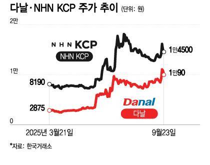 24일 한국거래소(KRX)에 따르면 다날은 전날 종가 기준으로 주가가 최근 6개월간 251.0% 상승했다. 2875원이 1만90원이 됐다. 신용카드·휴대전화·가상계좌 등을 활용한 전자결제가 주 사업인 이곳은 2019년 페이코인(PCI)을 발행, 가맹점 15만곳 안팎에서 가상자산 결제서비스를 제공한 이력이 있다.