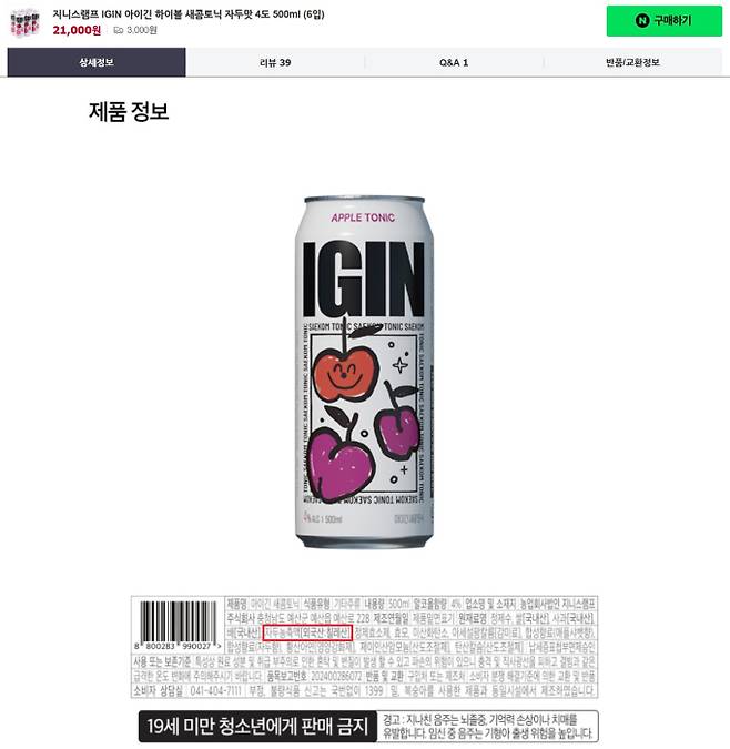 고발인은 지니스램프가 온라인 쇼핑몰에서 판매한 ‘IGIN 하이볼 토닉’ 시리즈 중 ‘자두맛’과 ‘수박맛’ 제품에 대해 23일 두 가지 혐의를 제기했다.