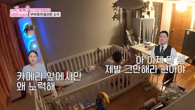 결국 산모는 눈물을 흘렸고, 박수홍은 “아내의 눈물 감정을 알아야 한다. 나는 촬영이 육아보다 쉽다. 아내가 혼자 육아하는 걸 보면 빨리 집에 가야겠다고 느낀다. 남편이 더 변해야 한다”며 남편을 향해 일침을 날렸다.