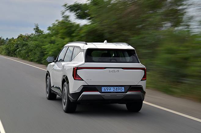 노면 충격을 거르는 능력도 준수하다. 요철이나 굴곡진 노면을 지나도 불필요한 떨림 없이 깔끔하게 충격을 처리한다. 서스펜션 스트로크는 길게 세팅된 듯하지만 수축과 복원 과정이 빠르고 자연스러워 차체가 곧바로 자세를 고쳐 잡는다. 동승자 입장에서도 불안감 없이 안락한 승차감을 느낄 수 있다. EV9과 마찬가지로, 큰 차 특유의 묵직한 안정감보다는 패밀리 SUV로서의 안락함에 포커스를 맞췄다.
