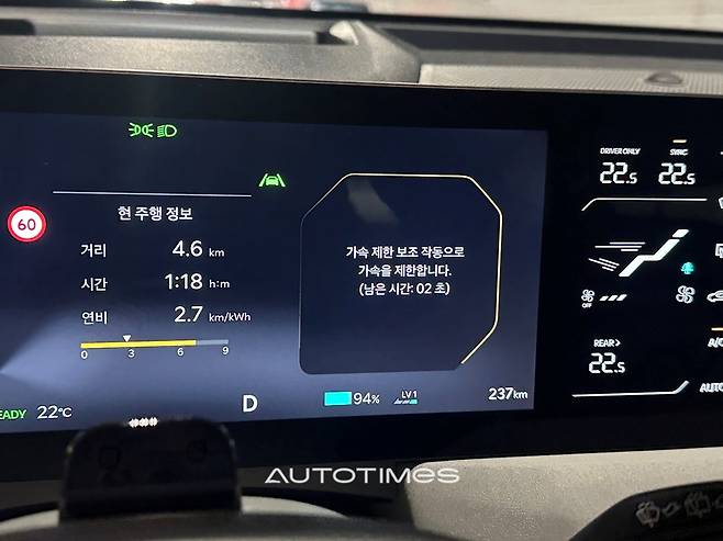 안전 보조 기능 중에는 ‘페달 오조작 안전 보조’가 특히 눈길을 끈다. 정차 상태에서 출발할 때 전·후방에 차량이나 벽이 있으면 가속 페달을 브레이크와 혼동해 밟았을 경우 경고 메시지와 경고음을 통해 운전자에게 즉각적으로 알리는 기술이다. 동시에 가속 제한과 제동 제어가 이뤄져 돌발 사고를 예방한다. 제한된 환경에서 급가속을 시도했을 때 시스템이 개입하는 모습은 운전자에게 신뢰감을 줬다. 안전성을 고려하면 OTA를 통해 다른 기아 전기차에도 확대 적용되길 기대할 만하다.