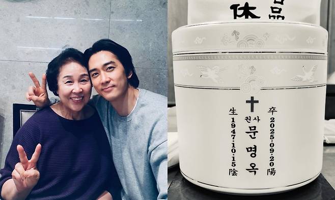 함께 공개한 사진 속에는 환하게 미소 짓는 어머니와 함께 사진을 찍은 송승헌의 사진이 담겨 있었다. 사진만 봐도 서로를 사랑하는 것이 느껴지는 애정 가득한 모자의 사진이 보는 이들의 눈시울을 붉게 했다. 다른 사진에는 장례 절차를 마치고 지난 23일 발인을 마친 어머니의 유골함 사진이 담겨 먹먹함을 자아냈다.