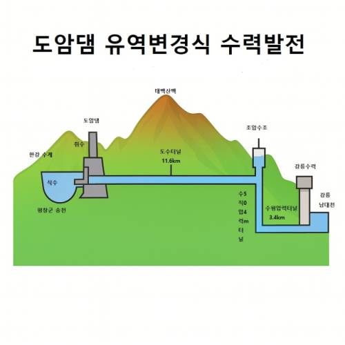 도암댐은 태백산맥을 기준으로 영서지역인 평창 송천 상류에 건설, 도수터널을 통해 영동으로 물을 옮겨 504m의 낙차를 통해 전기를 생산하고, 그 물은 강릉 남대천으로 흘려보내는 방식이다. 1991년부터 가동에 들어갔지만, 수질 문제 등이 불거지면서 2001년부터 운영이 중단된 상태다.