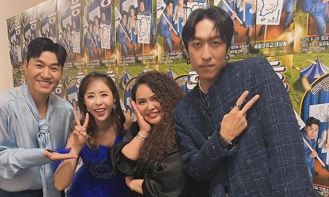 공개된 사진 속 홍선영은 코요태 멤버 신지, 김종민, 빽가와 나란히 서서 포즈를 취하고 있다. 밝은 미소를 지은 홍선영은 멤버들과 다정한 포즈를 취하고 있다. 그의 옆에 선 신지 역시 환한 미소로 카메라를 응시하고 있다.