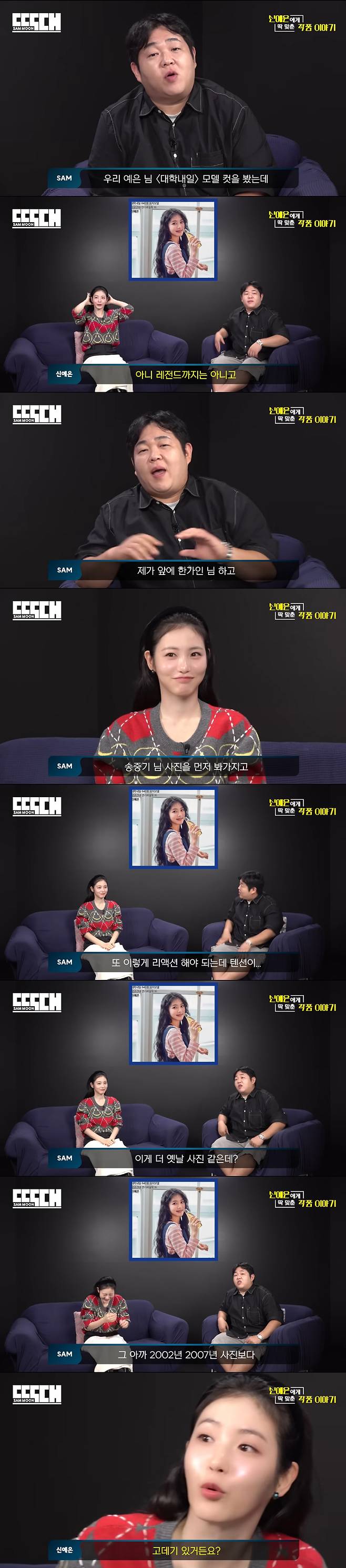 신예은은 "레전드까지는 아니고, 그냥 잘 찍어주셔서 예쁘게 나온 것 같다"고 겸손하게 말했다. 다만 문상훈은 "어우..와우..진짜"라는 영혼 없는 감탄사만 날린 뒤, "죄송하다. 앞에 한가인 님, 송중기 님 사진을 먼저 봐서 리액션을 해야하는데 텐션이 떨어졌다. 신예은님 사진이 앞에 한가인, 송중기 사진보다 더 옛날 사진같다"고 장난을 덧붙였 웃음을 안겼다.