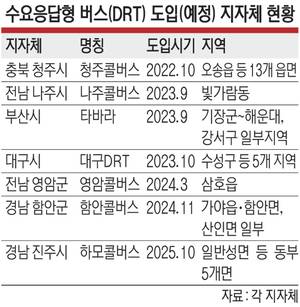 지방자치단체들이 교통 취약계층 이동권 보장과 대중교통 사각지대 해소를 위해 부르면 달려가는 '수요응답형 버스(DRT)'를 앞다퉈 도입하고 있지만 '노쇼(No-Show·예약 후 미탑승)'와 긴 대기시간 등으로 확대 시행에 한계를 드러내고 있는 것으로 나타났다.