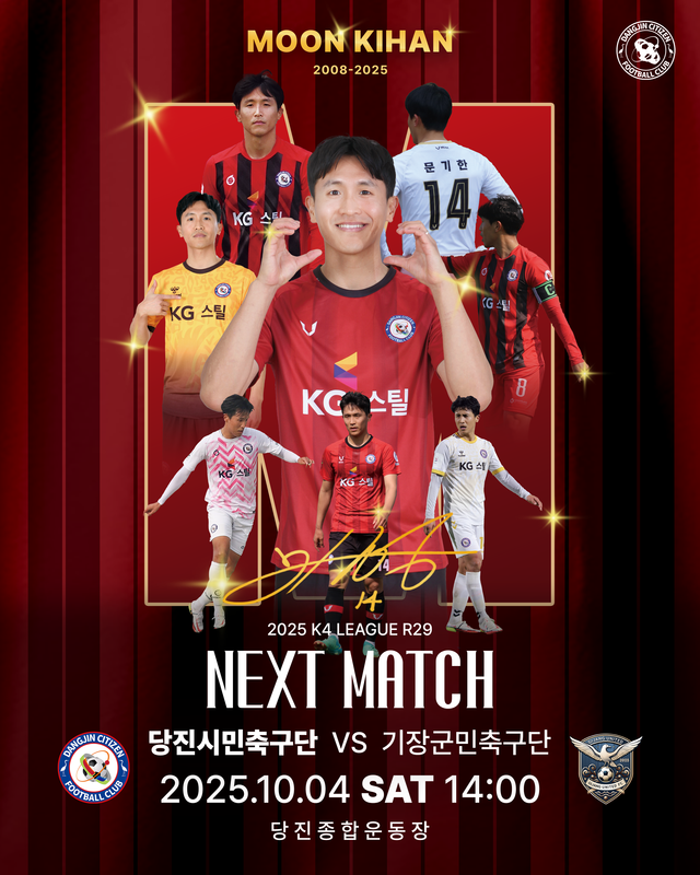 문기한은 오는 10월 4일 오후 2시 당진종합운동장에서 열리는 K4리그 당진시민축구단의 시즌 마지막 홈경기에서 은퇴식을 갖는다.