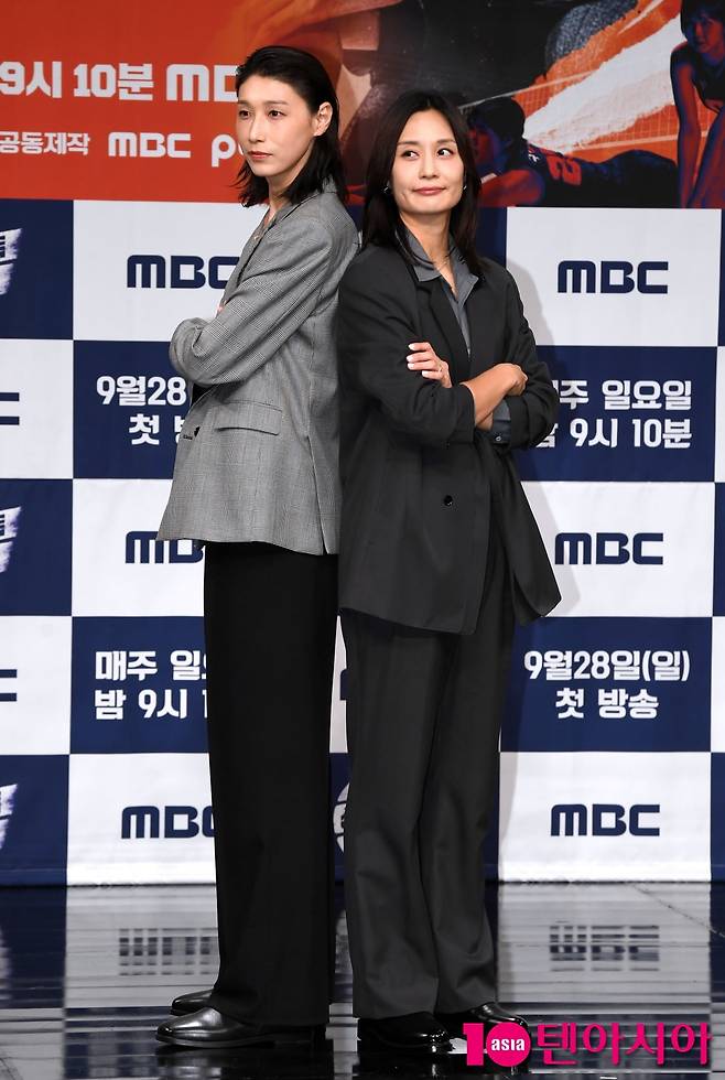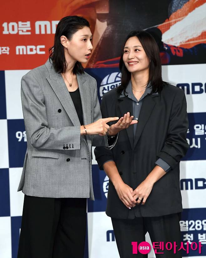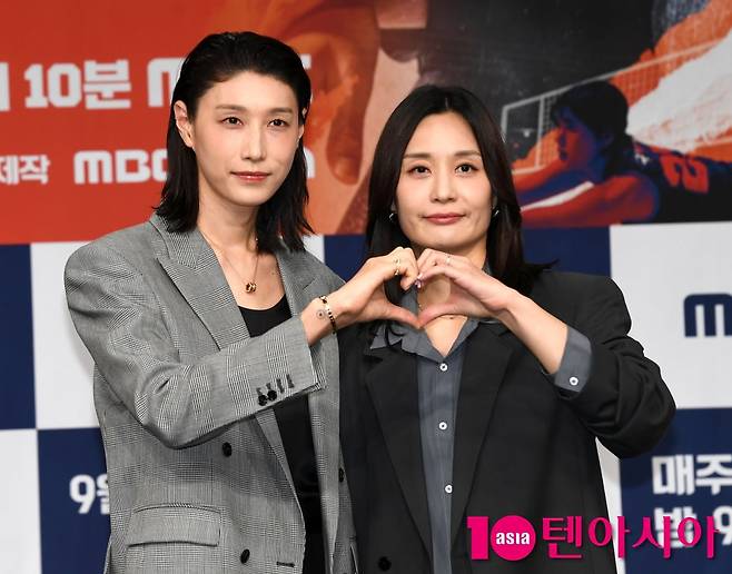 [텐아시아=조준원 기자]김연경과 표승주가 24일 서울 마포구 MBC 방송센터 골든마우스홀에서 열린 MBC 새 예능 '신인감독 김연경' 제작발표회에 참석해 포즈를 취하고 있다.