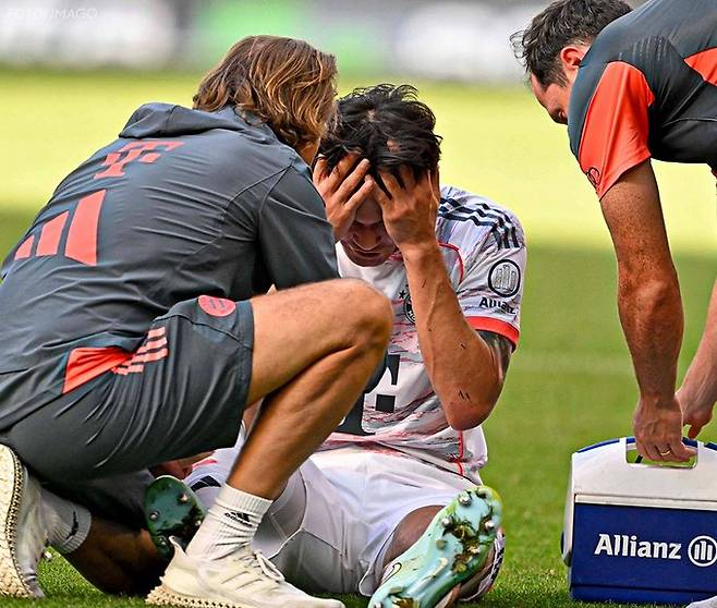 당시 전반전부터 뛰어난 수비력을 보여주며 뮌헨의 무실점을 이끌었던 김민재는 후반 24분경 종아리 통증을 호소하며 그라운드 위로 쓰러졌다.