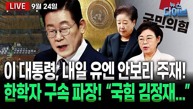 이 대통령, 내일 유엔 안보리 주재 / 재판 불출석 윤석열, 보석 심사는 출석... '피고인석' 김건희 공개 / 조희대 청문회 불출석? "삼권분립 망친 조희대" 민주당 맹공 / 통일교, "국힘 김정재에 후원금 전달"...한학자 구속 후폭풍! / '띠지 분실' 보고 누락! "경찰이면 파면 사유"... 파장 계속 / '특검 출신' 한동훈, 내란 특검 증인신문 요구에 "보수 분열 의도" 오늘 (9월 24일) 뉴스 다이브 많은 시청바랍니다.