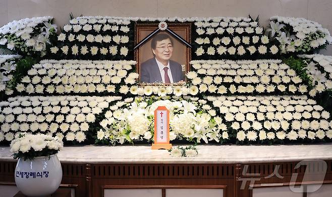 (서울=뉴스1) 김진환 기자 = 24일 서울 서대문구 연세대 신촌세브란스병원 장례식장에 고(故) 김대중 전 대통령의 차남인 김홍업 김대중평화센터 이사장의 빈소가 마련돼 있다.