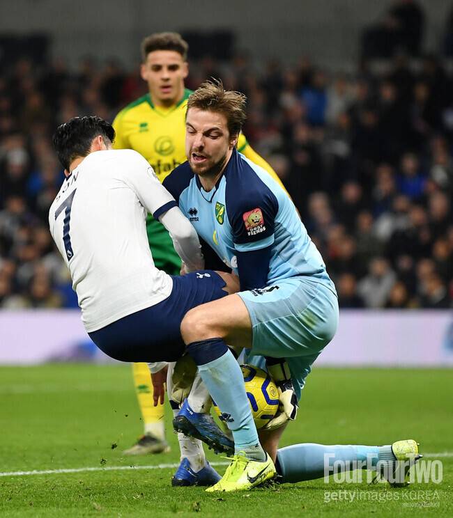 당시 모하메드 살라와 함께 득점왕 경쟁을 펼치던 손흥민은 리그 최종전 노리치를 만났고, 크룰이 지키는 골문을 뚫어야 했다.