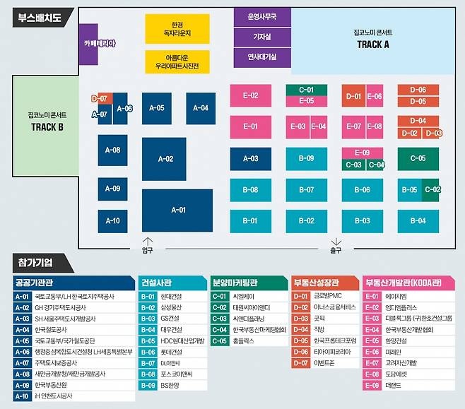 대우건설은 경기 의정부시 용현동에 들어서는 ‘탑석 푸르지오 파크7’(935가구)을 선보인다. 김영민 서울시립대 조경학과 교수가 조경 설계 총괄 디렉터로 참여하는 ‘숲세권 단지’다. DL이앤씨는 서울 서초구 서초신동아1·2차 아파트를 재건축해 강남 한복판에 조성하는 ‘아크로 드 서초’(1161가구)를, 포스코이앤씨는 다음달 경기 오산에 공급할 예정인 공공지원 민간임대주택 ‘더샵 오산역아크시티’(897가구) 청약 정보를 소개할 예정이다. 엠디엠플러스, 디블록그룹(옛 한호건설), 도담에스테이트 등 개발 업체는 분양 프로젝트와 신규 개발 프로젝트를 선보인다.