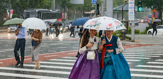 24일 기상청은 이날부터 내일까지 전국 대부분 지역에 비가 내리겠다고 예보했다. 경상권과 제주도를 제외한 지역에는 이틀 동안 80~100㎜가량의 많은 비가 쏟아질 것으로 보인다. 특히 수도권과 중부지방에는 시간당 30㎜ 안팎의 집중호우가 예고됐다.