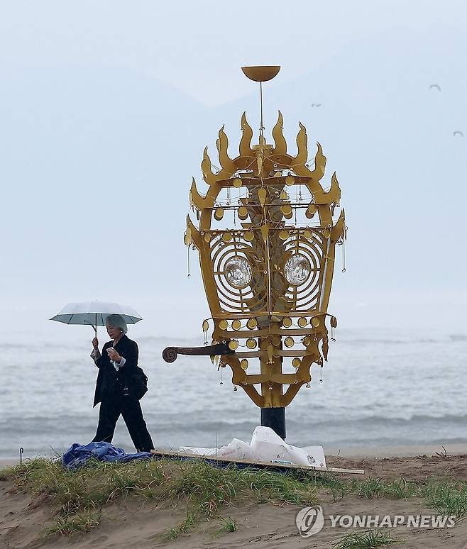 (부산=연합뉴스) 손형주 기자 = 24일 오후 부산 사하구 다대포해수욕장에 개막을 앞둔 부산바다미술제 작품이 설치되고 있다. 17개국 38명의 작가가 참여하는 이번 미술제는 27일 시작해 이달 11월 2일까지 열린다. 다대포해수욕장에서 열리는 것은 6년만이다.2025.9.24