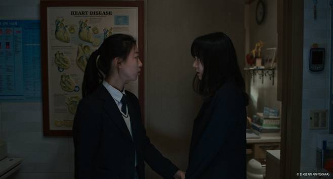 윤지라는 인물의 자리를 좁힘으로써 세밀하게 바라볼 수 있도록 만들기 위해 이용하는 방법은 크게 두 가지다. 평범한 학교생활을 보내는 다른 학생들의 모습을 때마다 잡아내고 있는 부분이 하나, 학교 주변에 전단을 뿌리고 현수막을 설치하는 일도 모자라 교실 안까지 들어오는 종성의 부인 민영(장선 분)의 역할을 축소하지 않는 것이 또 하나다. 평범한 학생의 자리에도 오롯이 서 있을 수 없고, 사랑하는 감정을 느낀 대상의 곁에도 설 수 없는 인물에게 새 생명을 잉태하도록 만드는 것. 감독은 이 같은 구조를 통해 윤지의 선택이 아닌, 그 선택 위에서 발생하는 감정과 행동에 관객들이 집중할 수 있도록 이야기를 진행시켜 나간다.