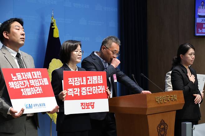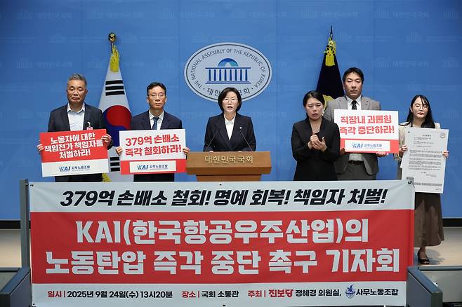 | ▲ 한국항공우주산업 사무노동조합은 24일 국회에서 정혜경 의원과 함께 기자회견을 열었다. |