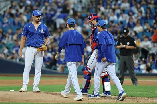 주자만 나가면 쾌남→소심남, '도미니카 파이어볼러' PS 선발 탈락?…"3루 너무 쉽게 준다" 사령탑 고심 [대구 현장]